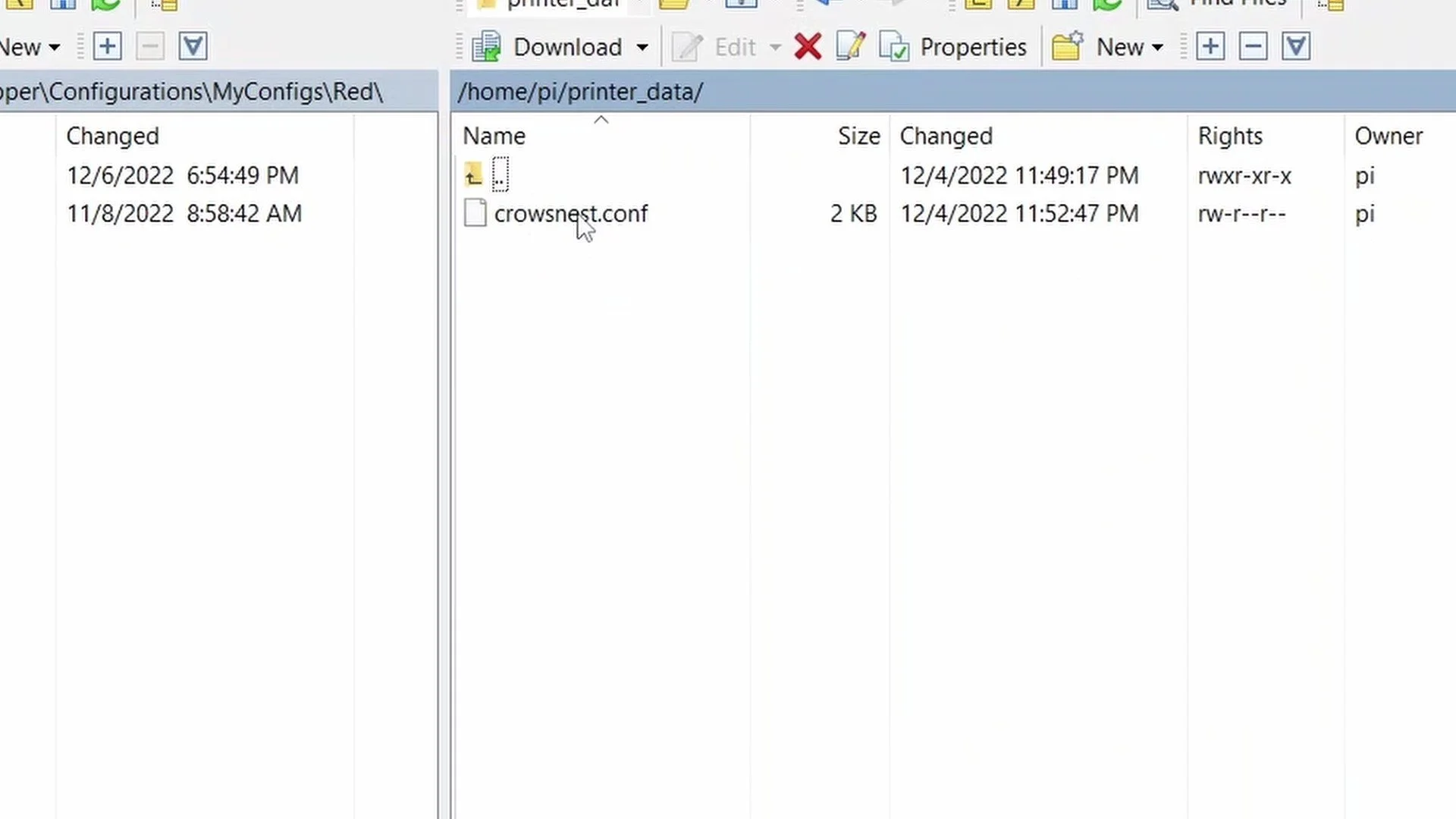 You have now created a crowsnest.conf file that will be used to configure your cameras, and CrowsNest is looking in the right folder pathway to find it!