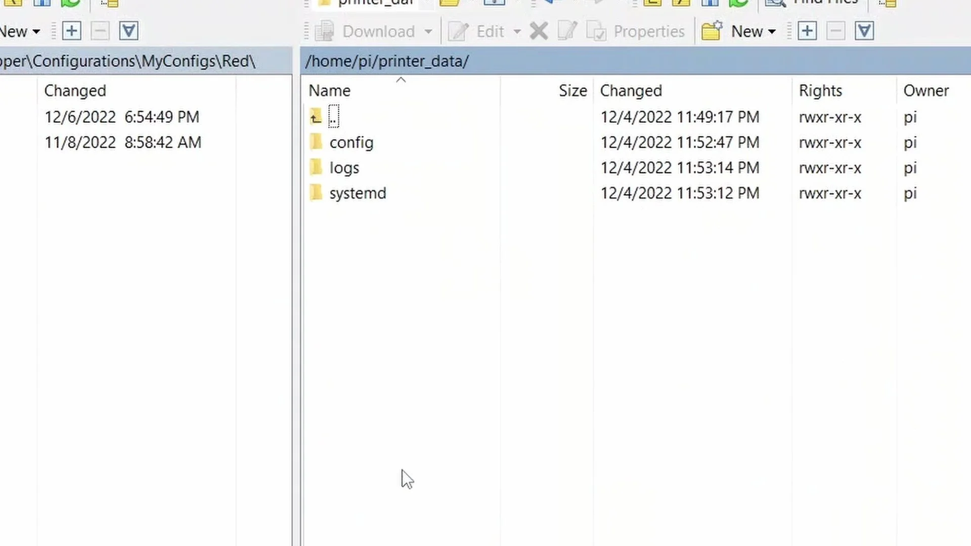 After saving that file navigate back one folder. You will still be within the printer_data folder, double click folder named ‘config’. Inside this folder will be a single file named ‘crowsnest.conf’ (the file all this fuss is about). Double click the file to open it, and then once it opens on a text editor highlight all the contents (ctrl+a) and then copy all the highlighted text (ctrl+c). You can now close out WinSCP and reopen your front end.